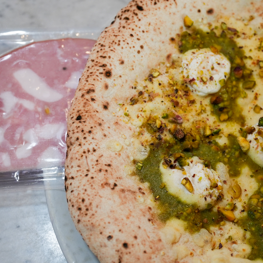 Gebakken op 500 graden in een Italiaanse steenoven.