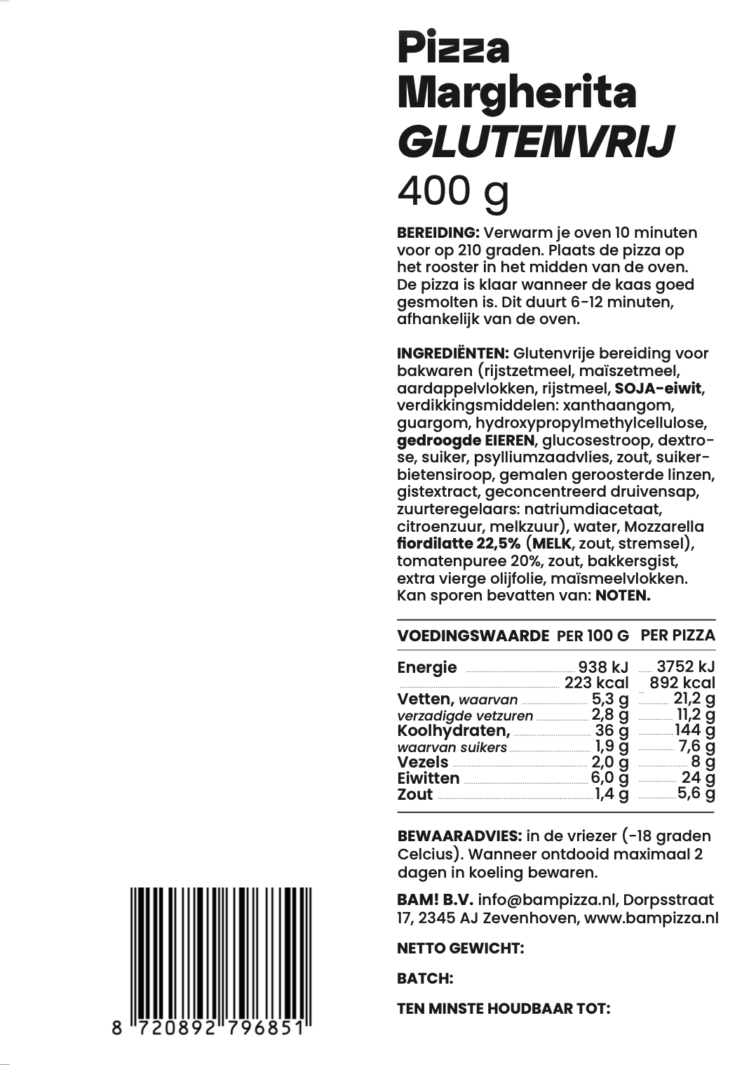 BAM! Na veel...heel veel testen met het deeg hebben we em: Echte Napolitaanse glutenvrije bodem van rijst- en maismeel. Heerlijke saus van Italiaanse tomaten en Fior di Latte.